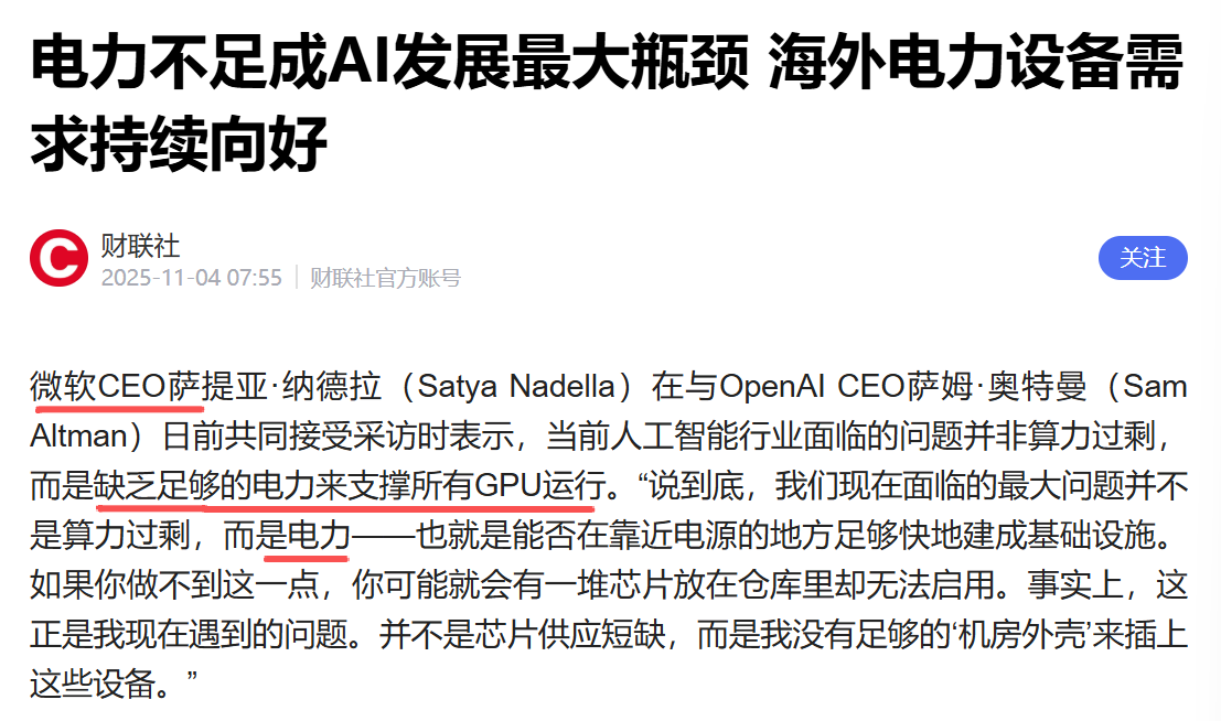 得益于持续多年基建,我国电力供应充足,相关产业发展不受电力限制,而美国AI厂商未解决电力供应的配套问题,甚至直接把数据中心IDC建在核电站周围,和核电站签约。